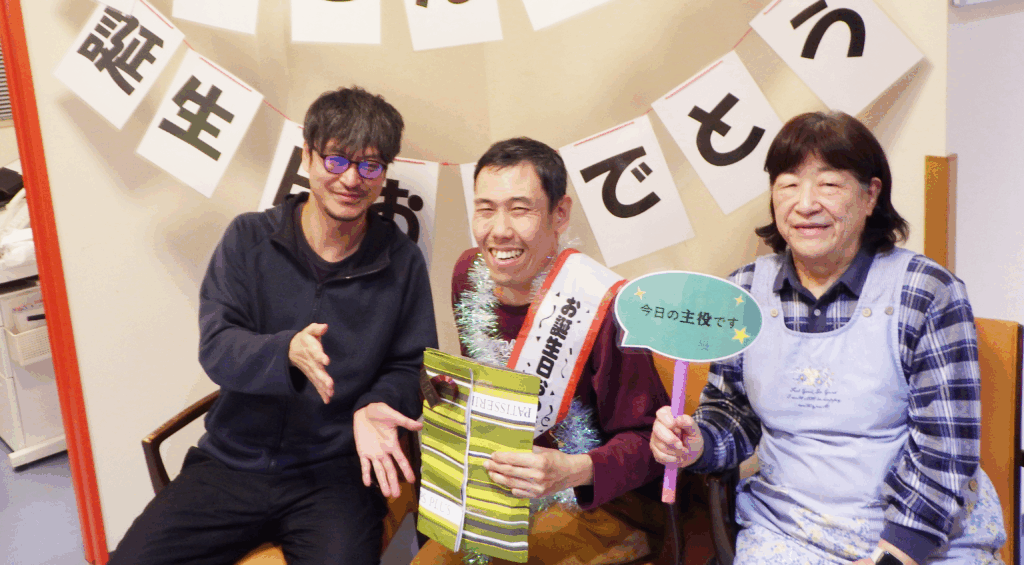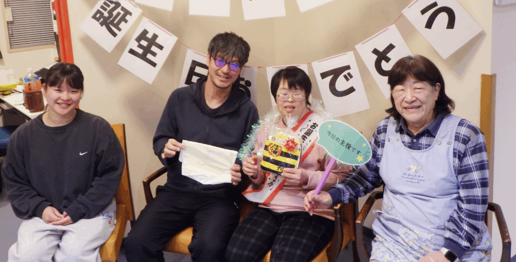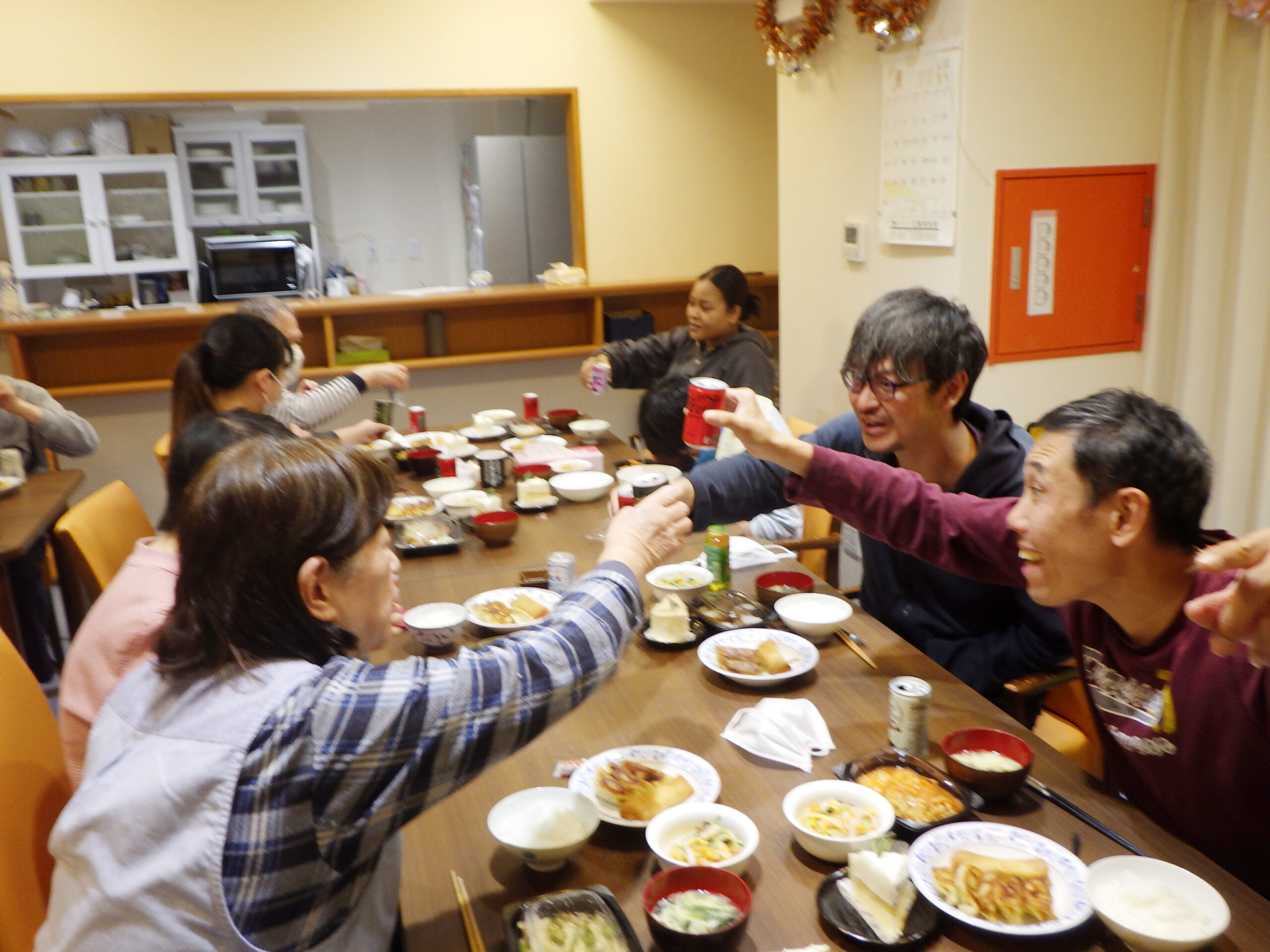 今月は、2名の利用者さんの誕生日会を行いました。当日はみんなで「ハッピーバースデー」を歌い、「おめでとう!」の声とともに乾杯してお祝いしました。利用者さんと職員が一緒になり、和やかで楽しい誕生日会となりました。