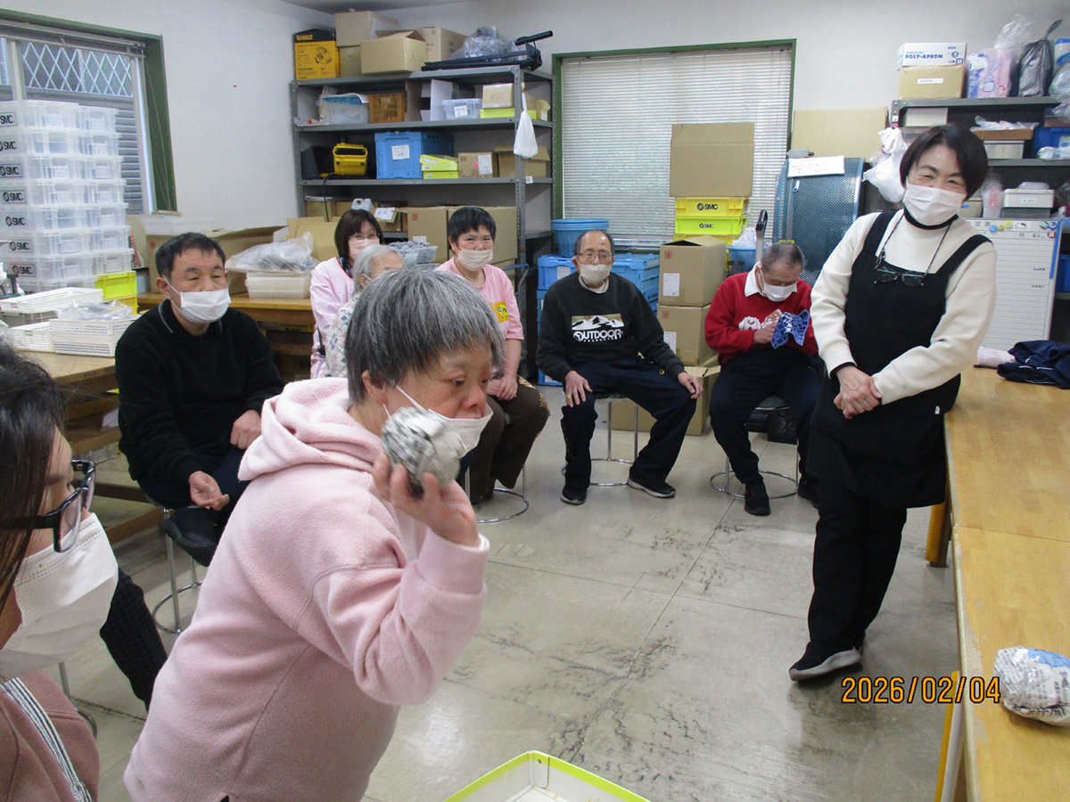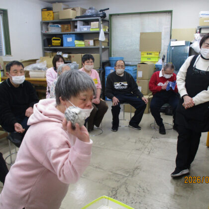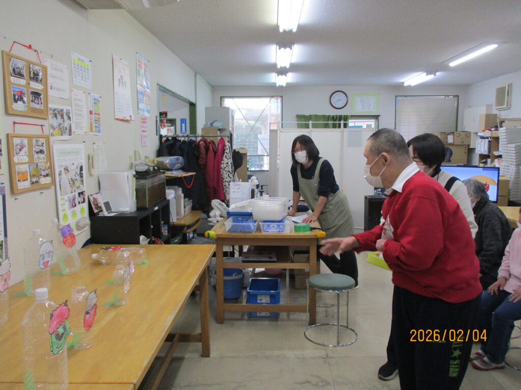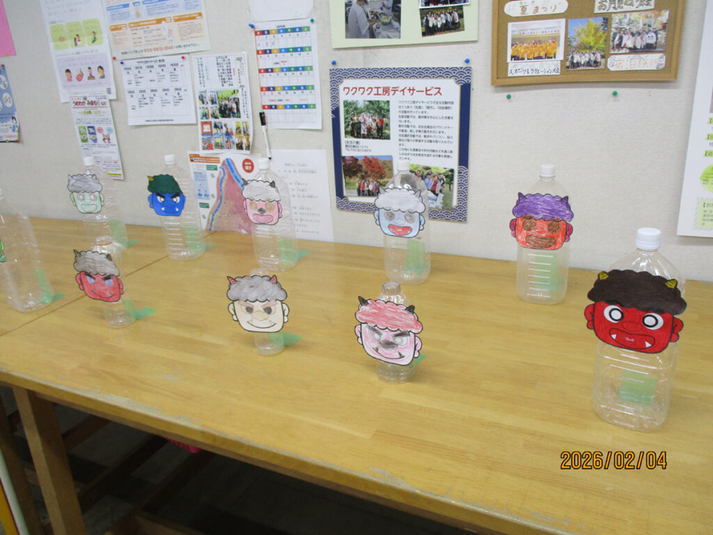 何体の鬼を退治できるか、一人ずつ豆を投げました。