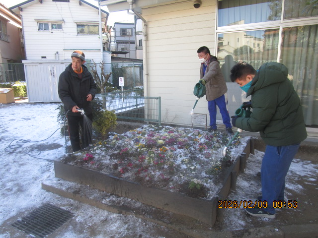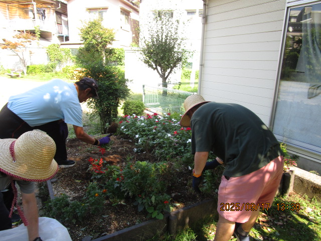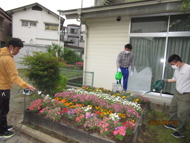 作業の内容は、花植え、苗床づくり、水やり、雑草取り、枯れ花摘み、ゴミ拾いなどです。